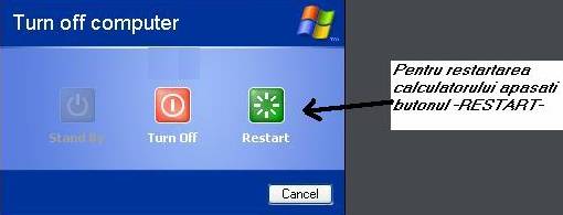 **folosirea butonului Restart existent pe unitatea centrala se recomanda doar in momentul in care celelalte doua alternative nu functioneaza.