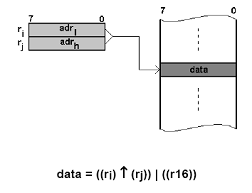 fie un µP care organizeaza liniar memoria, fie formatul un octet si o adresa fizica de 2 octeti, cel putin un registru index de 16 biti, deplasament de 8,16 biti: