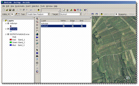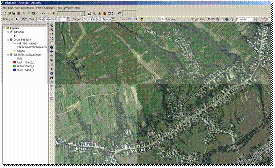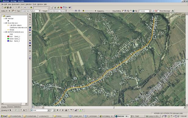 Pas 7. Vectorizarea elementelor de tip linie se va face intr-o sesiune de editare in ArcMap.
