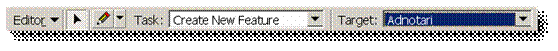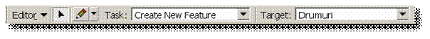 Pas 16. Ramaneti in sesiunea de editare, si in bara Editor, in caseta Task (tipul sarcinii), selectati din lista derulanta optiunea Create New Feature (Creati un element nou), iar pentru Target (layer-ul tinta), selectati layer-ul ce va contine adnotarile.