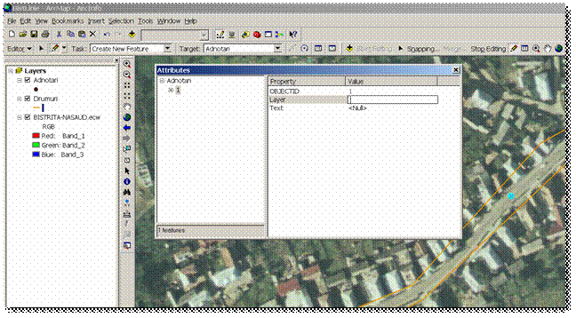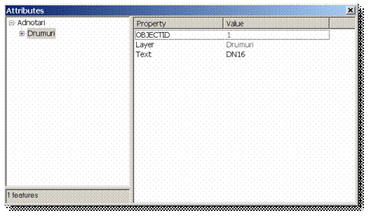 Fereastra Attributes va permite modificarea sau editarea valorilor atributelor pentru obiectele selectate, din cadrul layerelor aflate in sesiunea de editare.