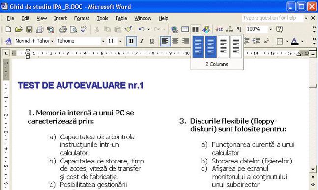 Daca trageti chenarul din dreapta sau marcajul de coloana spre