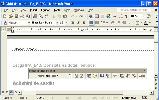 va tipari denumirea fisierului ca antet (Header) al paginii