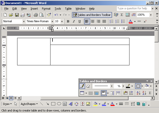 Când trasam un tabel cu Draw Table, acesta consta în prima faza dintr-o singura celula, mare cât tabelul. Pentru a crea mai multe celule, dispuse pe linii si coloane, trebuie sa divizati celula initiala. De asemenea, uneori veti fi în situatia de a diviza o celula dintr-un tabel pe care l-ati trasat manual; procedura este aceeasi.