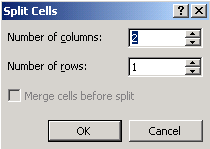 selectati comanda Split Cells se va deschide caseta de dialog cu