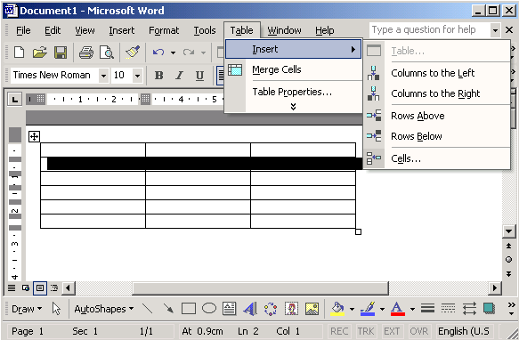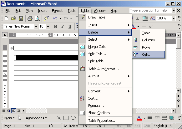 Pentru a sterge celule din tabel, selectati celulele respective (daca este vorba despre o singura celula, plasati punctul de inserare în ea; pentru un grup de celule, selectati întregul grup) si apelati comanda Table, Delete, Cells.