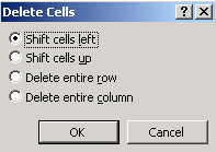 Se va afisa o caseta de dialog prin care vi se cere sa precizati cum doriti sa fie ajustat tabelul dupa stergerea celulelor respective: