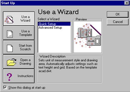 Start Up Wizard si New Drawing Wizard
