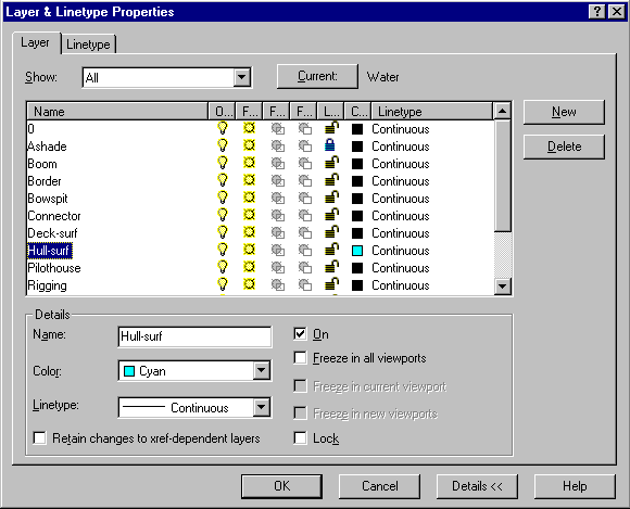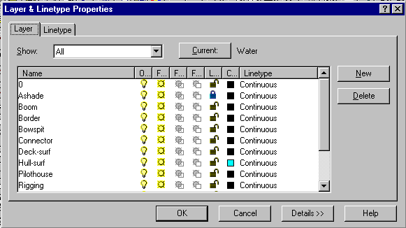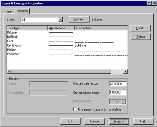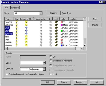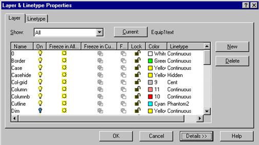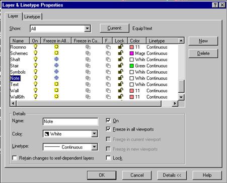 Controla si organiza proprietatile desenului cu ajutorul casetei de dialog Layer and Linetype Properties