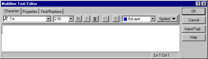 Din caseta de dialog Multiline Text Editor, punctati pe butonul Import Text.