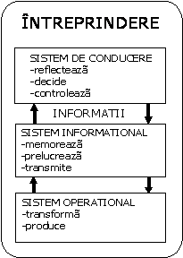 Atat data, cat si informatia sunt notiuni fundamentale ale sistemului informational al unei intreprinderi. Figura 2.1 ilustreaza un model sistematic al unei intreprinderi cu cele trei subsisteme ale sale: operant, informational si de conducere.