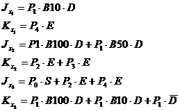 In continuare se vor realiza matricile starilor si ale tranzitiilor, pentru variabilele x1, x2, x3, x4 Pentru determinarea lor se utilizeaza diagrame Veitch – Karnaugh la care se utilizeaza variabilele de intrare ca elemente ale diagramei (intervin in relatii).