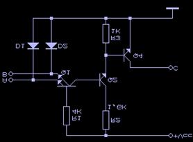 Rezistensa comună nu este inclusă în structura integrată, ea fiind calculată de proiectantul schemei în funcsie de numărul porsilor conectate împreună (n) si de numărul porsilor TTL care trebuie comandate de către această iesire comună (N).