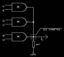 Având de exemplu de realizat funcsia implementată în figura 5.3 este necesară o logică pe trei nivele ceea ce duce la o întârziere mare. Aceeasi funcsie se poate implementa cu circuite cu colectorul în gol. Funcsia realizată poartă numele de sI-cablat (simbolul punctat).