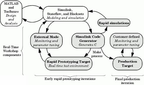 O alta problema care apare în procesul de proiectare si testare de prototipuri este aceea a testarii algoritmilor proiectati în mediul real pentru a decide daca algoritmii respectivi se vor aplica sau este nevoie de o reproiectare. Proiectantii de la Simulink au elaborat Real-Time Windows Target. Folosindu-ne de acest mediu, modelul Simulink devine o interfata cu programul executabil care este executat în timp real prin care putem acorda pe model diferiti parametri pentru a observa apoi care este efectul acestor modificari. Totul se întâmpla în timp real si atât Simulink cât si executabilul ruleaza simultan pe acelasi calculator. Acest instrument este deosebit de valoros în faza de elaborare a prototipului.
