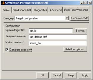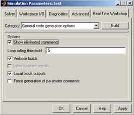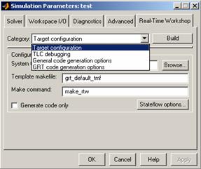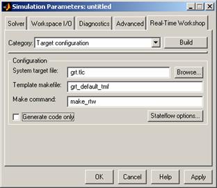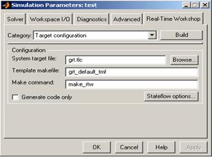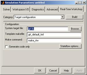 Se poate configura procesul de generare a programului Real-Time Workshop dupa necesitate prin modificarea urmatoarelor componente.