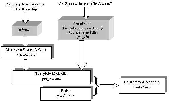 Dupa cum rezulta din tabelul de mai sus, în urma faptului ca prin configurarea utilitarului mbuild am ales compilatorul C din mediul Microsoft Visual C/C++ version 6.0 si am dorit Generic Real-Time Target, mediul RTW va folosi:
