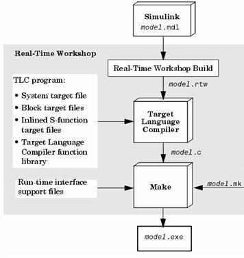 Real-Time Workshop poate fi privit ca un compilator care proceseaza un program sursa scris în acest limbaj de nivel foarte înalt (VHLL). Programul sursa VHLL este cunoscut sub denumirea generica de model si va avea o extensie implicita .mdl. RTW preia la intrare fisierul model.mdl si emite la iesire cod pentru compilatoarele clasice de nivel înalt (high-level language (HLL) compiler). Rezultatul acestei "traduceri" este reprezentat de un set de fisiere sursa C (model.c) sau sursa Ada (model.adb) precum si o serie de fisiere header cu extensia .h (model.h, model_export.h).