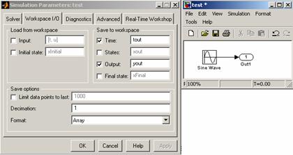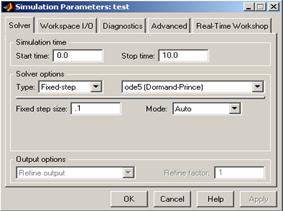 Ne intereseaza configurarea Solver si Real-Time Workshop.