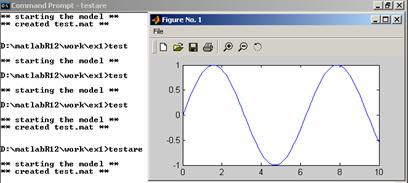 Refacând procesul de constructie, se obtine un nou fisier executabil test.exe care se va include, ca o comanda externa, în functia testare.m, care se recompileaza. Lansând în executie sub DOS testare.exe, se va obtine rezultatul: