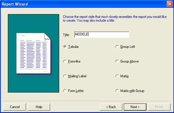 Proiectarea unui raport în Oracle se realizeaza folosind componenta Report Builder. Ca exemplu vom construi raportul Modele, utilizând Report Wizard.