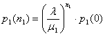 P(n1,0,τ + Δτ) = P(n1,0,τ)[1 - λΔτ)[1 - μ1Δτ] + P(n1 - 1,0,τ) ·
