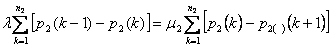 λ[p2(0) - p2(n2)] = μ2[p2(1) - p2(n2 + 1)]