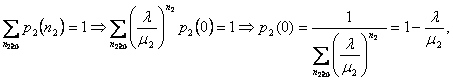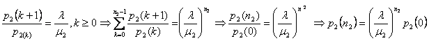 λ[p2(n2 - 1) - p2(n2)] = μ2[p2(n2) - p2(n2 + 1)], n2 ≥ 1.