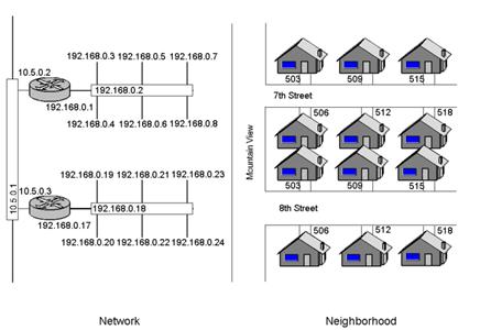 unui cartier, iar router-ul ca intersectarile dintre diferitele nume ale
