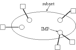 În fiecare rețea există stații prevăzute pentru execuția programelor utilizatorului, numite hosts (end system). Aceste hosts transferă mesaje prin mediul fizic al rețelelor, numite subnets. Putem astfel distinge nivelul de comunicație implicat de subnets și nivelul aplicație implicat de hosts. În cele mai multe din rețele, subnets constă din două componente : linii de transmisii și circuite de comutare. Circuitele se mai numesc canale, trunchiuri, etc. Comutatoarele sunt computere specializate folosite pentru interconectarea mai multor linii (IMP - Interface Message Processor). Astfel o linie de intrare se asociază uneia de ieșire prin aceste noduri de comutare a pachetelor, sisteme intermediare, etc. În fig 2, la un IMP se pot conecta unul sau mai multe stații. Traficul între hosts se face prin IMP. În mare, există două tipuri de subnets :