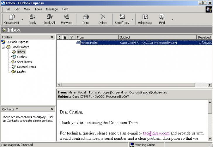 Executati clic pe un mesaj din Outbox pentru a-i vedea continutul în