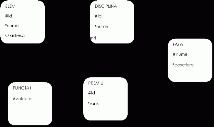 O scoala doreste sa tina evidenta desfasurarii olimpiadelor într-un an scolar. Se doreste obtinerea urmatoarelor informatii: