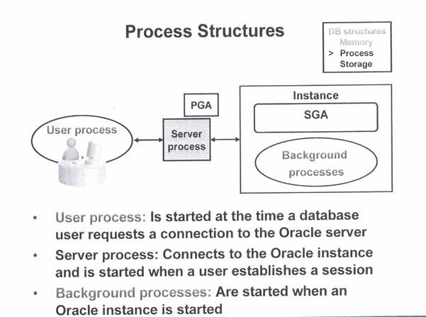 - &nb 545b12f sp; &nb 545b12f sp; Procesul server: se conecteaza la instanta Oracle si este pornit atunci cand un utilizator stabileste o sesiune