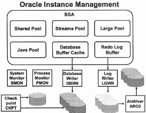 O instanta Oracle este alcatuita din structuri de memorie ce formeaza SGA si procese de fundal care "evolueaza in spatele scenei"si se implica in functionarea instantei. Cele mai cunoscute procese de fundal sunt urmatoarele: