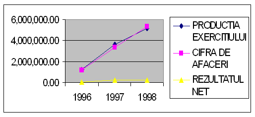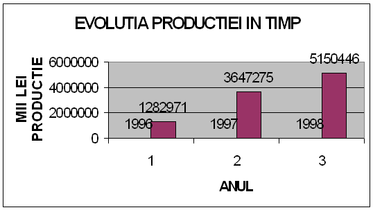 Din datele furnizate de societate evolutia productiei ( volum valoric) de-a lungul perioadei de analiza (1996-1998) este prezentata în graficul ce urmeaza: