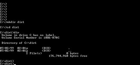 Īn figura 7.1.3. este prezentat ecranul unei astfel de interfete īn mod text, exemplul ales fiind o linie de comanda MS-DOS.