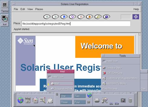 Pentru sistemele Unix, care folosesc medii bazate pe text, au fost create diverse interfete grafice care se instaleaza peste sistemul de operare. Exista multe tipuri de interfete grafice pentru aceasta familie de sisteme de operare, majoritatea dintre ele fiind grupate sub denumirea generica de X-Windows. O caracteristica deosebita, a acestor sisteme de interfata grafica, este faptul ca permit executarea unei aplicatii sau comenzi pe un calculator aflat la distanta si obtinerea rezultatului grafic pe un terminal local. Un exemplu raspāndit pentru Unix-urile de firma (HP-UX, Ultrix, Solaris, etc.) este CDE. Īn figura 7.1.5, este prezentat un ecran al interfetei grafice CDE pentru Solaris.