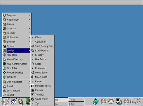Pentru Linux, interfetele grafice sunt numeroase, datorita aspectului academic si "free software" al acestui sistem de operare. Fiecare interfata are specificatii proprii, si nu sunt toate compatibile īntre ele. Cel mai raspāndit sistem grafic este "fvwm" si, īn ultimii ani, KDE. Un ecran al interfetei KDE este prezentat īn figura 7.1.6.