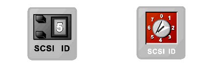Dispozitivele SCSI externe folosesc douatipuri de selectoare pentru alegerea