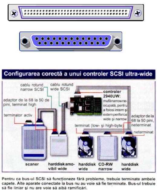 - conectorul D cu 25 pini -conectorul cu 68 pini folosit la Wide SCSI 2 si Wide SCSI 3