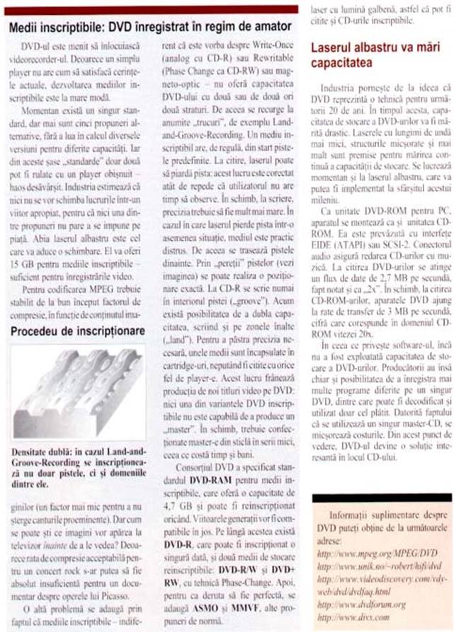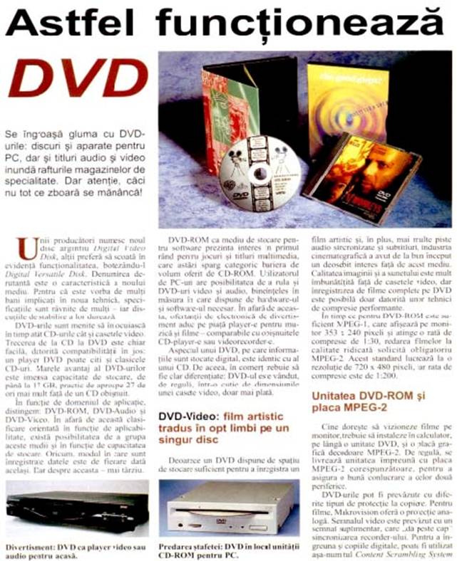 Unitatea pentru discuri DVD (Digital Video Disk): urmatoarea generatie de discuri CD-ROM sunt DVD-urile, care permit stocarea si redarea filmelor. Acest tip de unitate a fost lansata pe piata recent si necesita o placa specialasi software aferent pentru a putea fi utilizata.