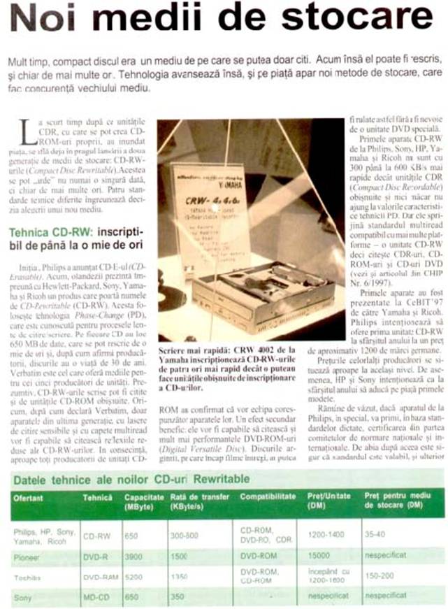 In expansiune sunt unitatile CD reinscriptibIle care permit citirea si reinscrierea informatiilor.