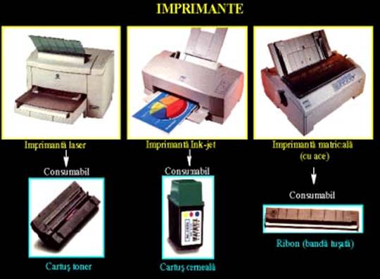 Imprimanta este un periferic utilizat pentru tiparirea informatiilor. Exista mai multe tipuri de imprimante, cele mai populare fiind: