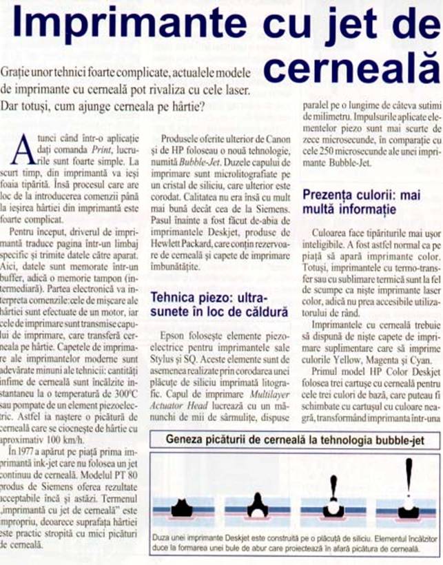 2. IMPRIMANTE CU JET DE CERNEALA