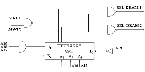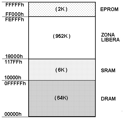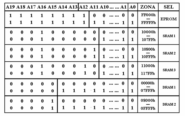 De asemenea prima portiune al spatiului de adrese este dedicata tabelului de pointer-i de adresa pentru intreruperi (256x4 octeti), si intrucit sistemul proiectat va lucra cu intreruperi, aceasta zona trebuie sa fie acoperita fizic de memoria DRAM, astfel ca ea poate fi modificata din program.
