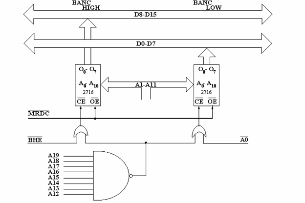 Precizam faptul ca ordinea gruparii tipurilor de memorie este indiferenta, dar ca adresa de start al lui (8086) fiind FFFF0H, ea trebuie sa fie acoperita fizic de o memorie EPROM, ce va contine secventa de program de pornire al sistemului.
