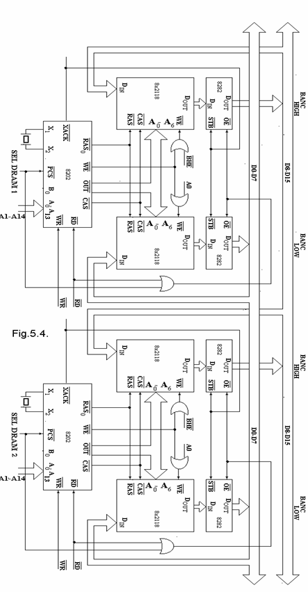 In figura 5.4 se face prezentarea modului de conectare a circuitelor de memorie DRAM la magistralele sistemulul si la circuitul de selectie, infigur 5.3se gaseste logica de selectie pentru memoria DRAM .