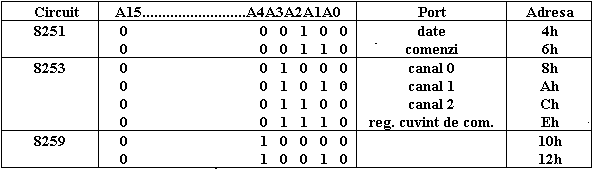 Tabelul adrese limita pentru circuitele de memorie EPROM, SRAM si DRAM sint prezentate in tabelul 5.1.
