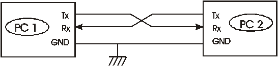Semnalul de emisie Tx de la PC1 este primit de al doilea PC pe piciorul Rx de receptie iar de la Tx de la PC2 la fel se leaga la receptia Tx de la PC1. Astfel se pot transmite date (fisiere, etc) sau se cupleaza intr-o retea seriala cele doua calculatoare PC cu o investitie minima !