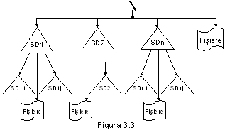 fisierele (programele si datele) memorate pe discuri au o denumire formata din nume si extensie, unde numele este un sir alfanumeric de maxim 8 caractere iar extensia de 3 caractere; numele si extensia sunt separate prin ,.';